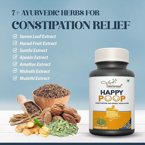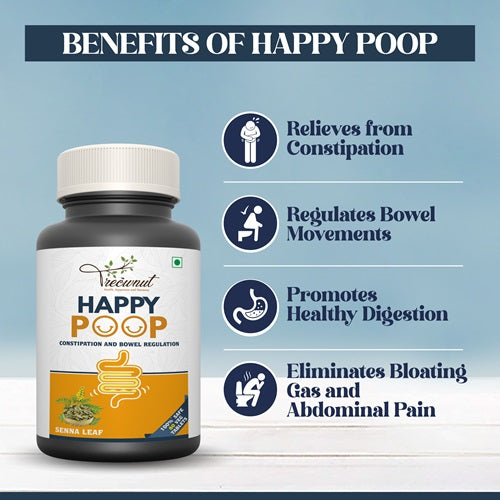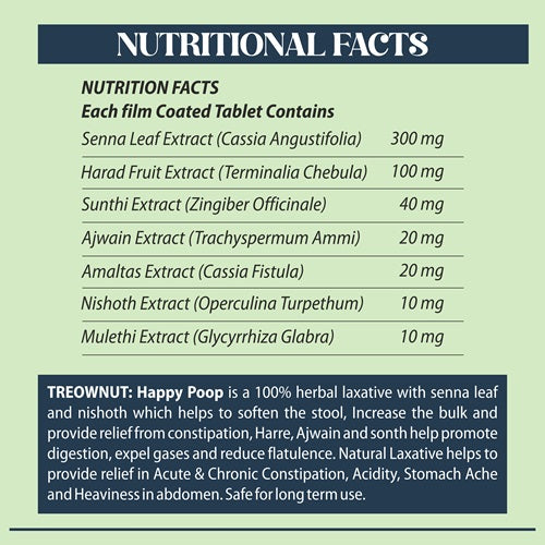 TREOWNUT Happy Poop - Constipation Relief and Regulates Bowel Movement. Free of Artificial Flavors, Sweeteners, and Colors. Nutraceutical Tablets
